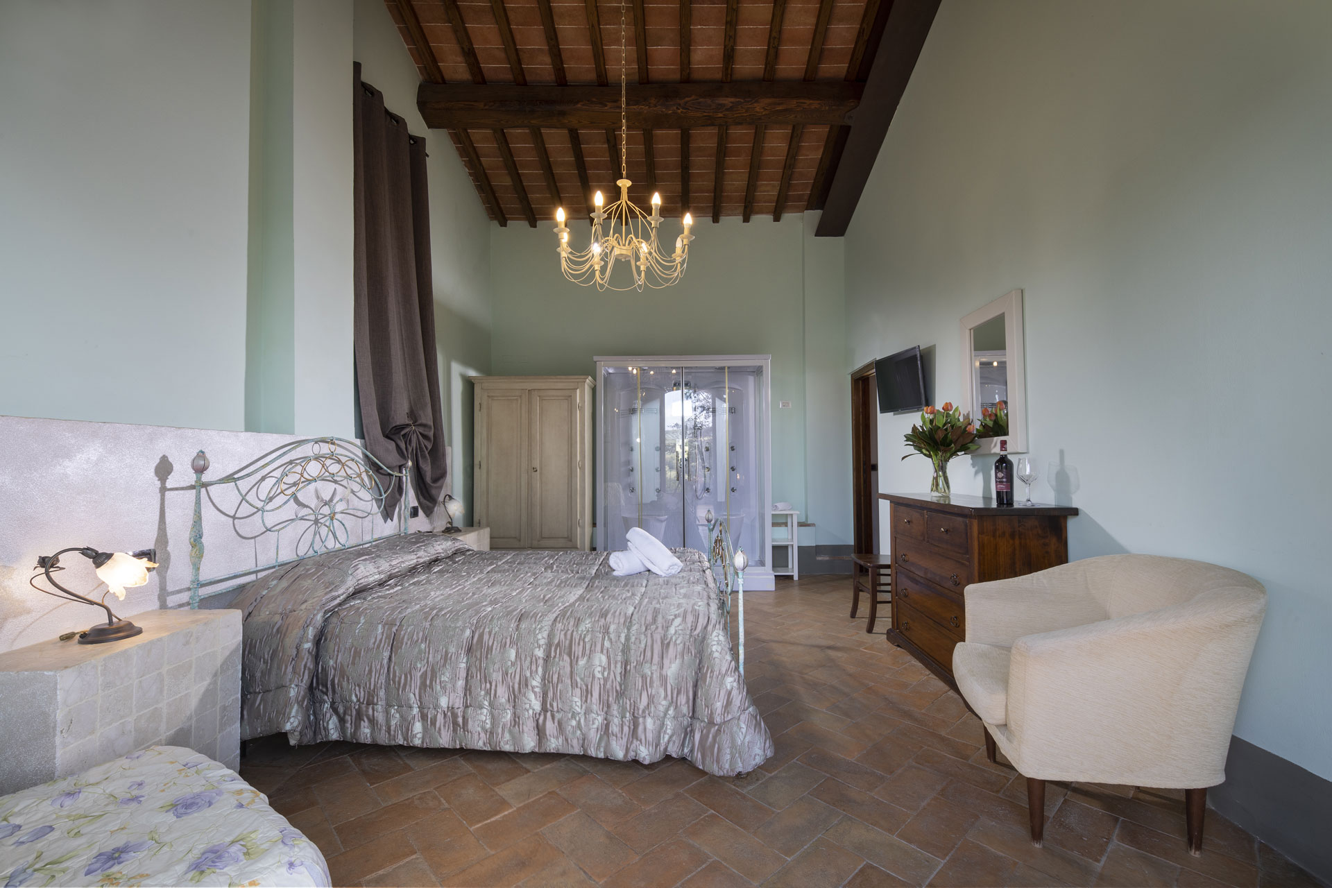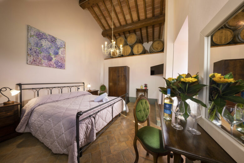 Perfect for couples or travellers seeking tranquillity, the Sauvignon Room invites guests to relax and savour the beauty of the surrounding countryside. Its atmosphere reflects the charm and history of the region, creating a serene retreat in the heart of Tuscany.