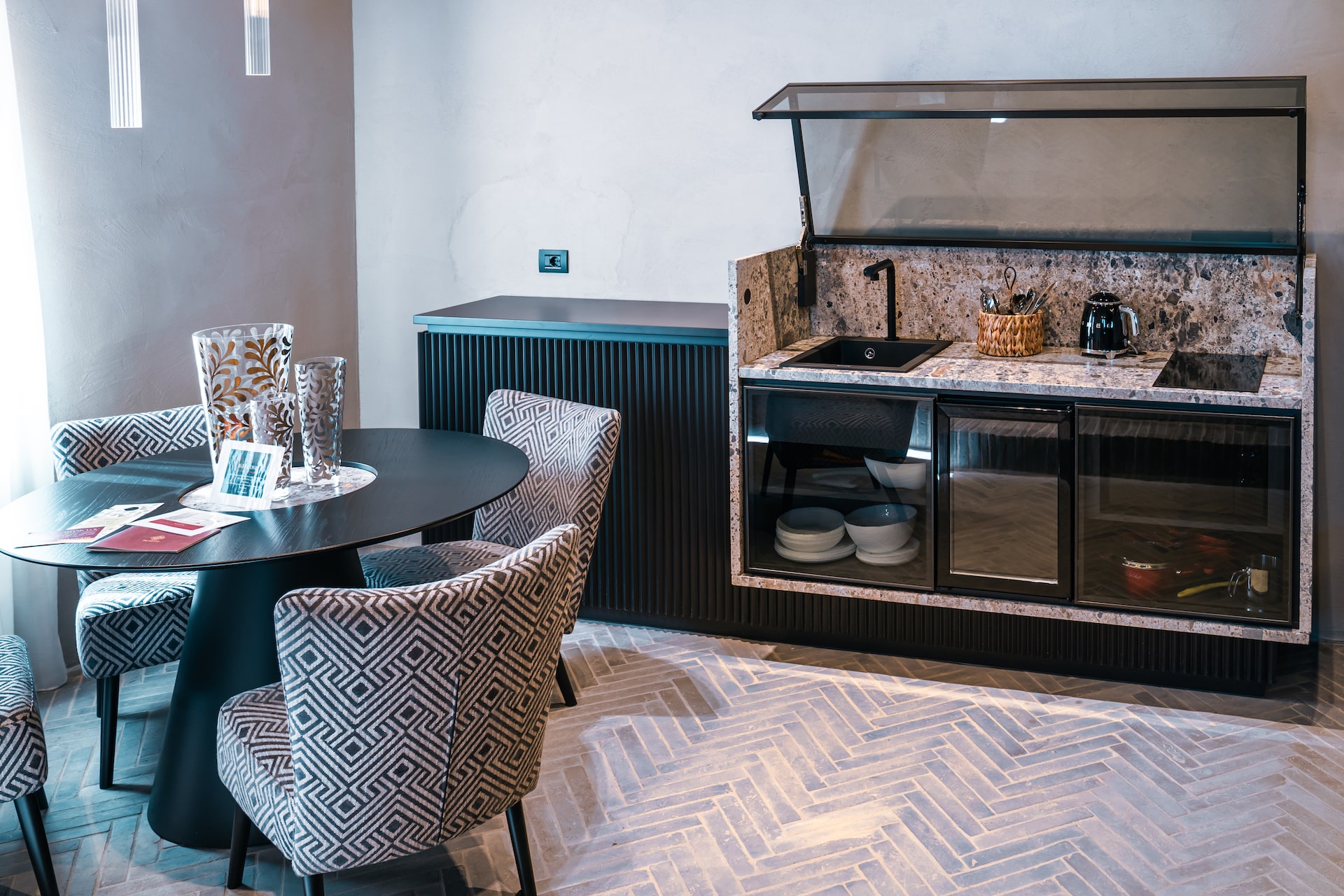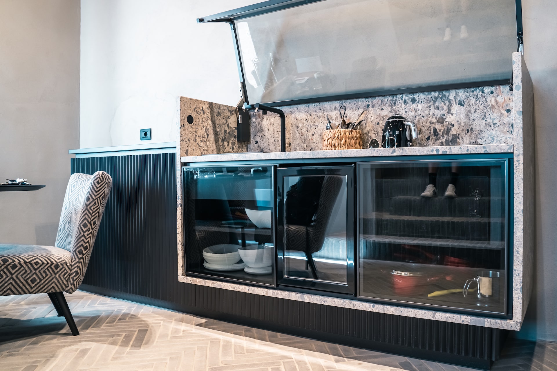 • Living room with hideaway kitchenette